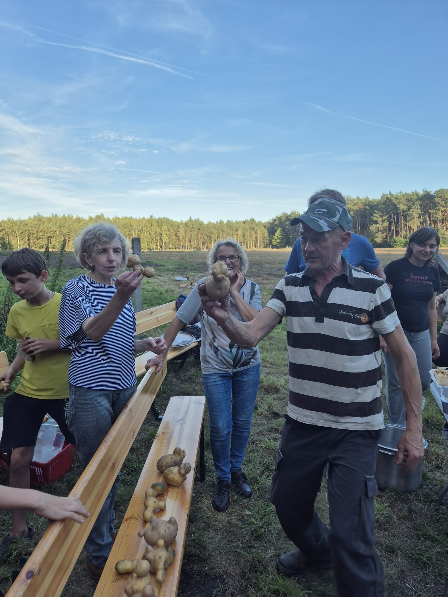 Popołudniowe spotkanie przeciągnęło się aż do późnych godzin wieczornych. Dodatkowych emocji dostarczyły konkursy – wybierano ziemniaka o najciekawszym kształcie, a także próbowano swoich sił w rzucie ziemniakiem do koszyka, co wcale nie było łatwym zadaniem.