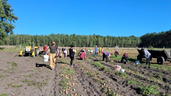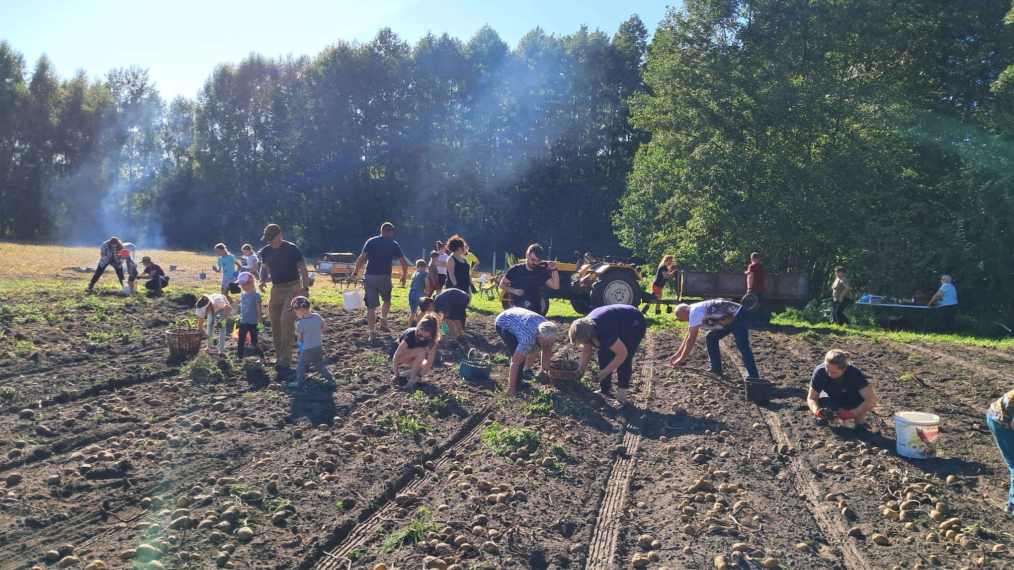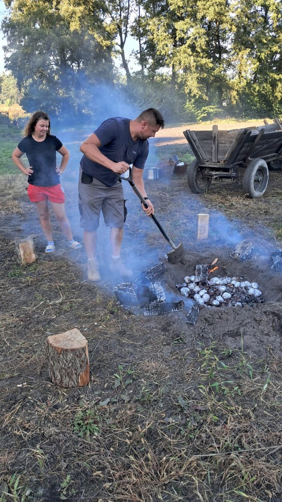 Po zakończonej pracy na polu, wszyscy zebrali się przy ognisku, gdzie pieczono ziemniaki oraz kiełbaski. Wspólna biesiada sprzyjała rozmowom i integracji, a pieczone w żarze ziemniaki smakowały jak nigdy.