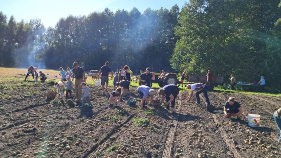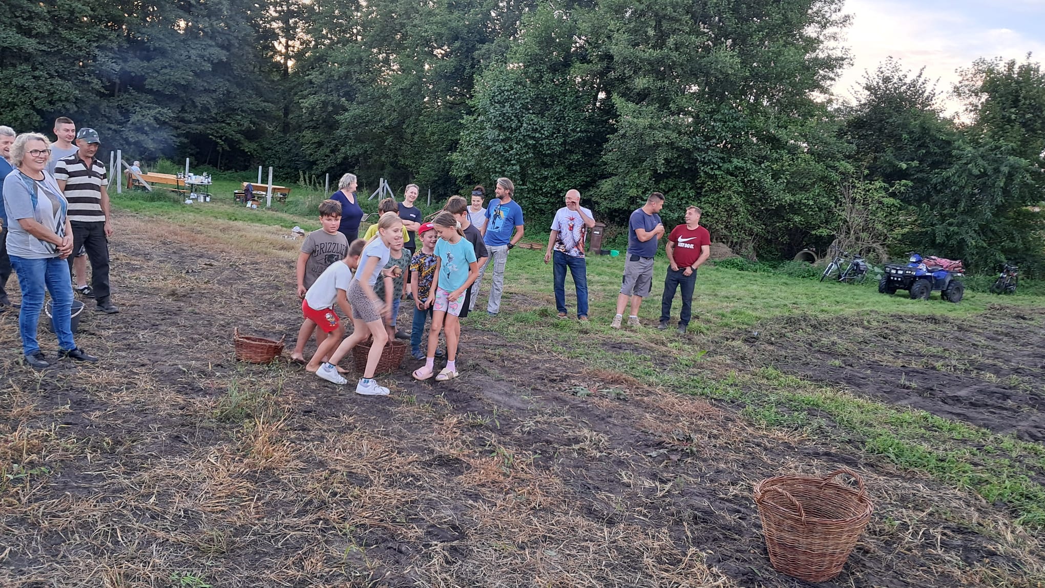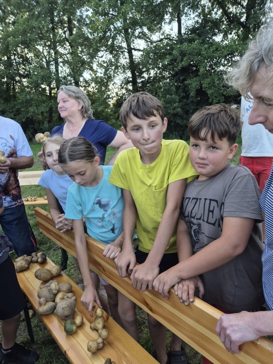 Popołudniowe spotkanie przeciągnęło się aż do późnych godzin wieczornych. Dodatkowych emocji dostarczyły konkursy – wybierano ziemniaka o najciekawszym kształcie, a także próbowano swoich sił w rzucie ziemniakiem do koszyka, co wcale nie było łatwym zadaniem.