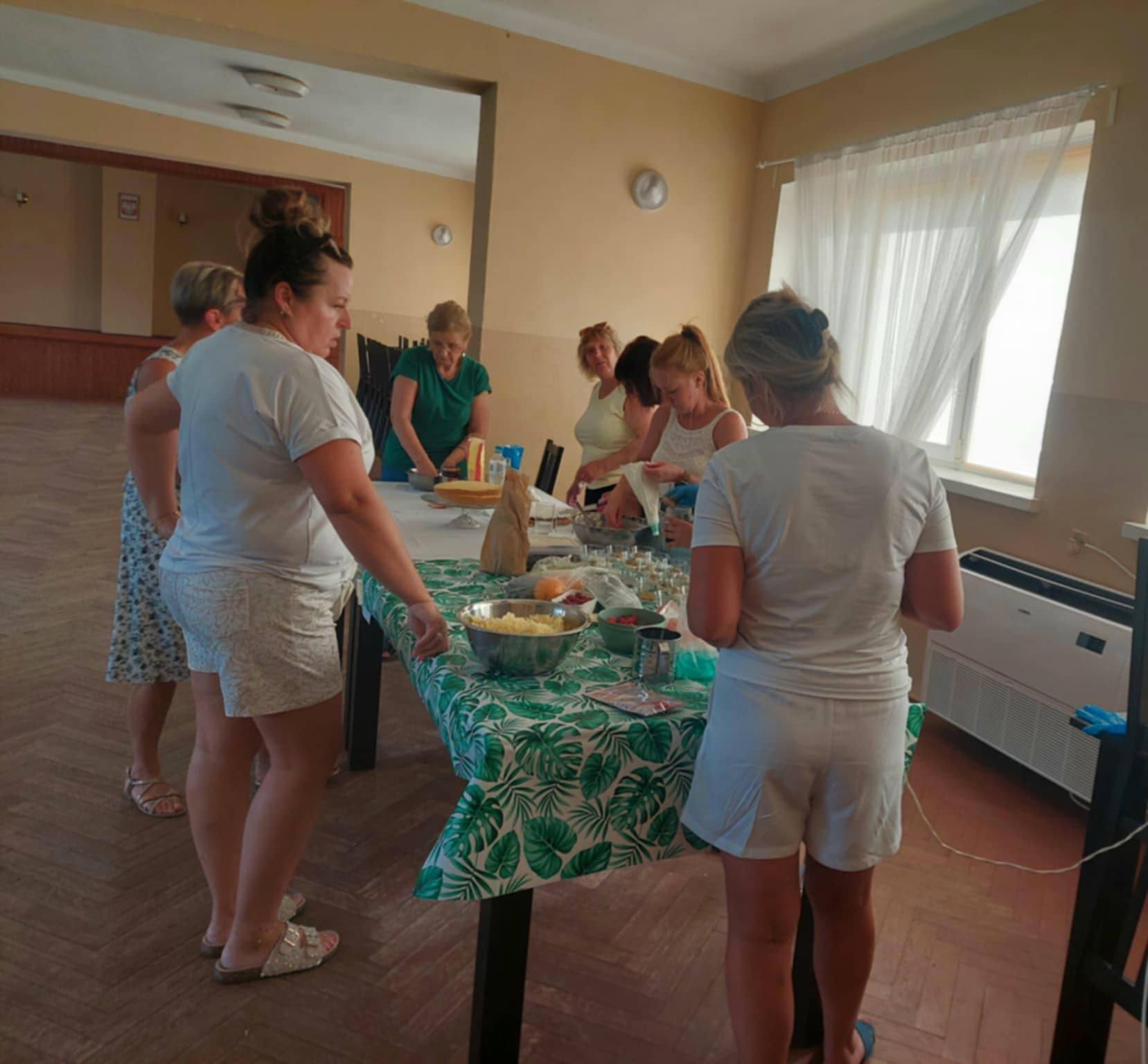 Koło Gospodyń Wiejskich w Wygiełzowie w dniu 26 lipca 2025r. o godz. 16.00 w siedzibie Ochotniczej Straży Pożarnej zorganizowało pierwszy warsztat kulinarny. Uczestnicy projektu pod czujnym okiem prowadzącej warsztat piekli tort, szarlotkę z jabłkami, wykonywali różnorodne deserki i drinki. Członkowie podczas warsztatu nauczyli się jak przygotowywać biszkopt do tortu, a także jak zrobić dobry krem do przełożenia. Zdobyli wiedzę jak przygotowywać drinki, deserki. Wymienili się przepisami, które posłużą do robienia słodkości w domach. Na koniec warsztatów odbyła się wspólna degustacja potraw. Furorę zrobił tort oraz drinki o różnych smakach. Połączyliśmy przyjemne z pożytecznym i wspólnie miło spędziliśmy sobotnie popołudnie. Kolejny warsztat ustaliliśmy na 23 sierpnia 2025r. na godz. 16.00, na który serdecznie zapraszamy.