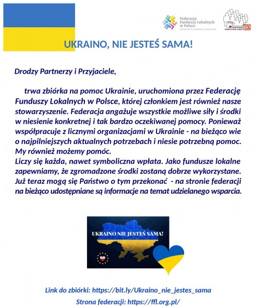 Pomagamy UkrainieMariusz Pelian | Drukuj | Odsłony: 717 LINK do zbiórki: https://bit.ly/Ukraino_nie_jestes_sama Strona federacji: https://ffl.org.pl/