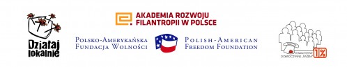 Dofinansowano ze środków Programu „Działaj Lokalnie” Polsko-Amerykańskiej Fundacji Wolności realizowanego przez Akademię Rozwoju Filantropii w Polsce oraz Stowarzyszenie Dobroczynne „RAZEM”.